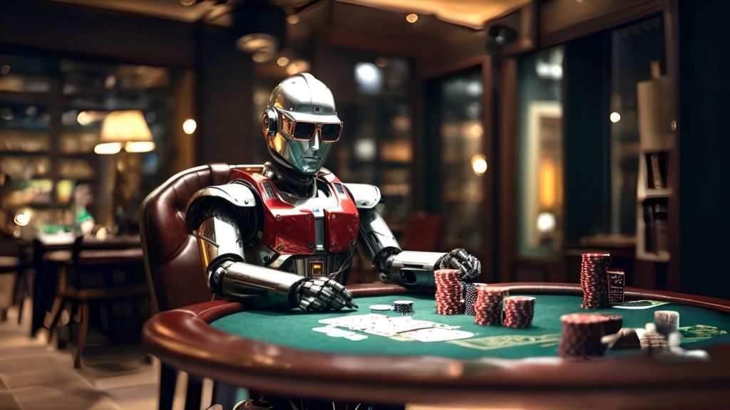 Robot (bot) jugando al póker. Imagen creada con Leonardo y Runway