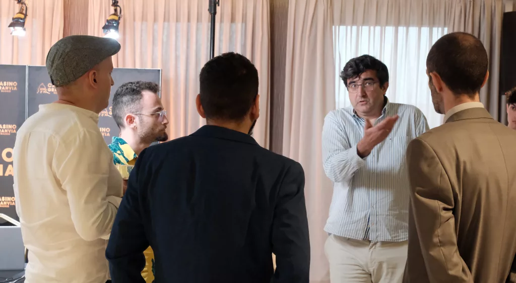 José Martínez habla con Levy Rozman y David Martínez, dos de los organizadores. Foto: FMB / Damas y Reyes
